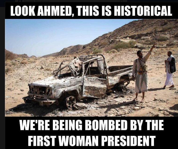 When she bombs all the brown people in Syria, Iran and the rest of the Middle East, they’ll be shouting — with big smiles — : “Look, mama, we’re being bombed by the First Woman President, and she’s pro-choice11!!!1!!!11″